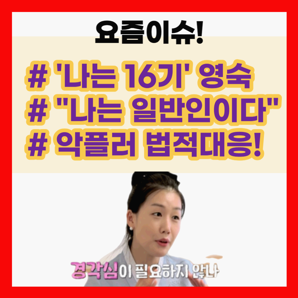 예능 프로그램 '나는 솔로' 16기의 출연자인 영숙이 인스타그램을 통해 악플에 대한 법적 대응을 선언하면서 인터넷에 화제를 모으고 있습니다. 그 동안 악플과의 불편한 싸움을 겪어온 영숙의 이야기를 통해, 우리 현대 사회에서 뒤엉켜 있는 온라인 커뮤니케이션의 어두운 면과 그 안에서 용기있게 싸우는 자의 모습을 살펴보겠습니다.