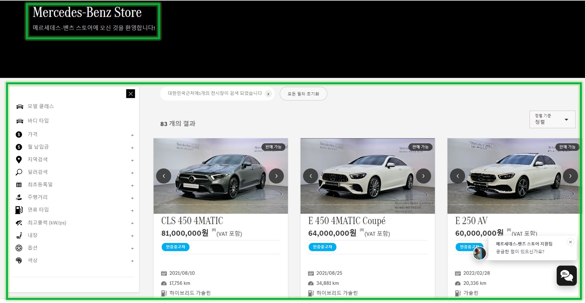2. 메르세데스 벤츠 스토어 사이트를 통하여 인증중고차 서칭 하는 방법