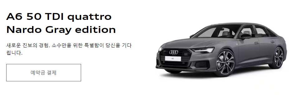 이 모든 높은 수준의 기능과 디자인을 갖춘 A6 50 TDI 콰트로 나르도그레이 에디션의 가격은 9,963만2,000원입니다.