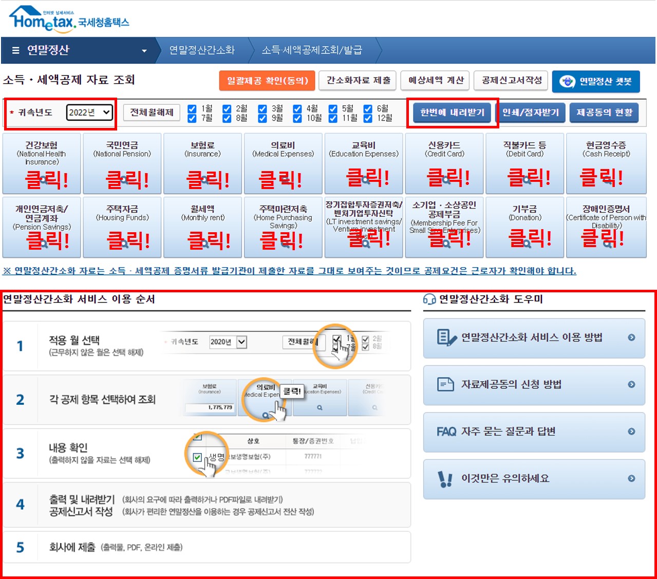 연말정산내역을 쉽게 출력 하여 제출 하실 수 있습니다.